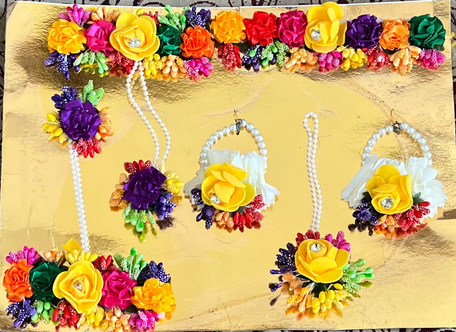 artificial flower mehndi set could focus on love, tradition, beauty, and growth, such as, "Adorned with love, tradition, and the beauty of artificial flowers," "May your love story bloom with endless joy," or "Henna and flowers: A beautiful symbol of new beginnings." You can also use descriptive phrases like, "Blooms of joy on my special day" or "A touch of everlasting beauty for your big day